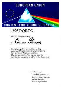 The first Certificate I got from the EU Contest for Young Scientists, held